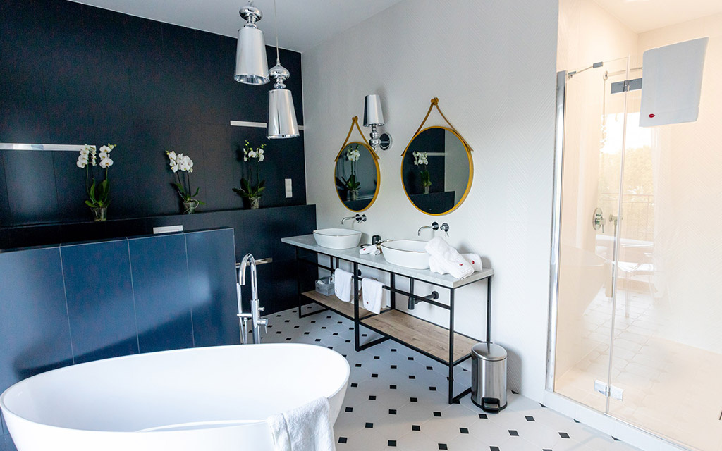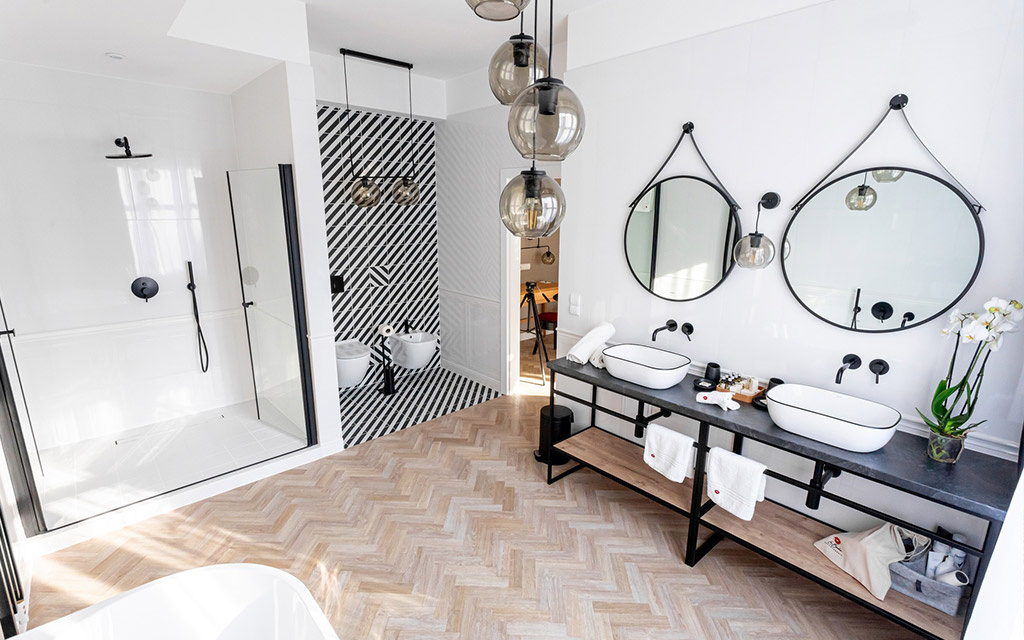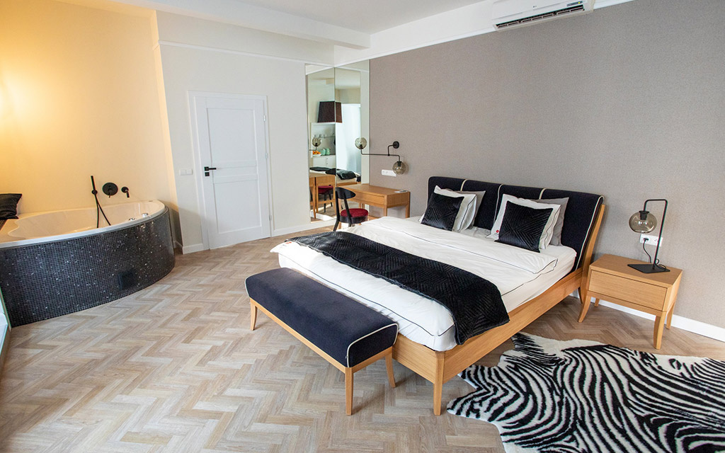 Projekt wnętrz (Apartamenty La Bouche Oświęcim) opracowany przez Alina Solik – Wenklar Pracownia Heksy