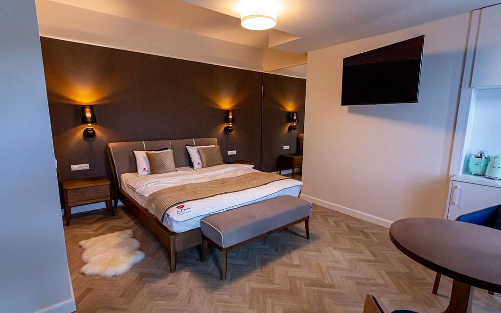 Projekt wnętrz (Apartamenty La Bouche Oświęcim) opracowany przez Alina Solik – Wenklar Pracownia Heksy